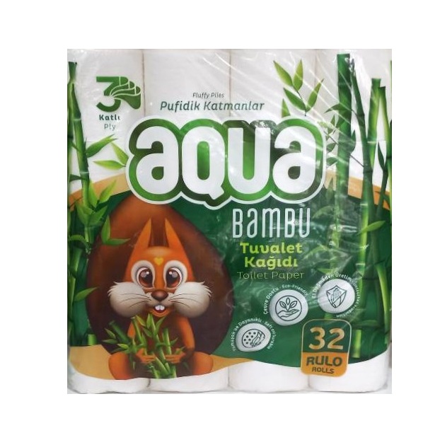 دستمال توالت آکوا بامبو سه لایه 32 رول AQUA BAMBU TOILET PAPER