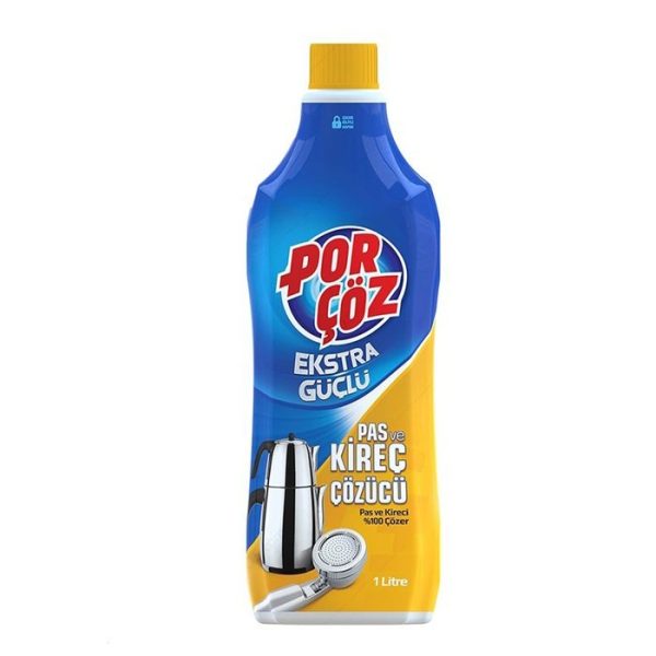 ایع جرم گیر پورچوز مدل EKSTRA GUCLU حجم 1000 میل برای جرم زدایی و رفع رسوب کتری و قوری، کتری برقی، کابین دوش، سردوش، روشویی، توالت فرنگی، سطوح کاشی و سرامیک، وان حمام و سطوح شیشه ای محصولی ایده آل است و بسیار کاربردی می باشد. کمک کننده خوبی برای رهایی از لایه آهکی ضخیم شده می باشد.