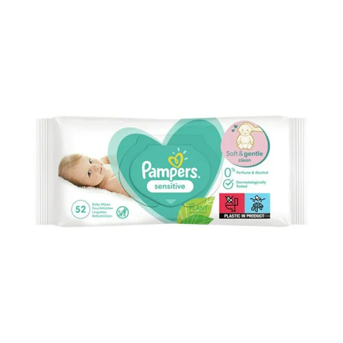 دستمال مرطوب نوزاد پمپرز Pampers ضد حساسیت بدون بو و عطر بسته 52 عددی
