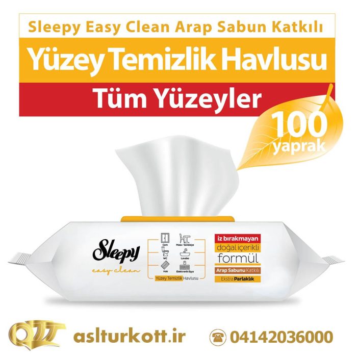 دستمال مرطوب همه کاره اسلیپی Sleepy مخصوص سطوح رنگ زرد بسته 100 عددی