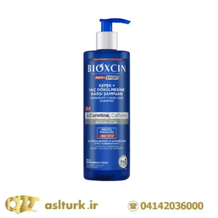 شامپو بیوکسین ضد شوره و ضد ریزش مردانه 2in1 حاوی کافئین و ال کارنیتین حجم 500 میل