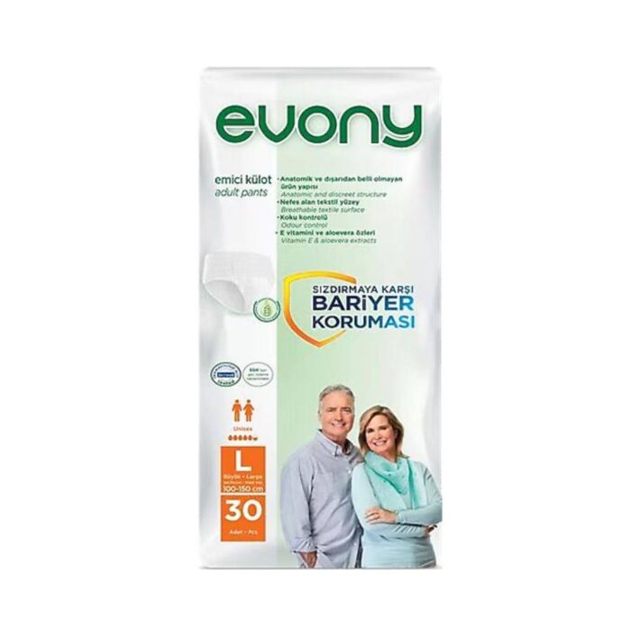 پوشک بزرگسال شورتی اوونی evony بسته بندی 30 عددی سایز لارج